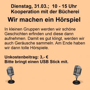 Ferienaktion Wir machen ein Hörspiel; 1.-4. Klasse; in Kooperation mit der Bücherei